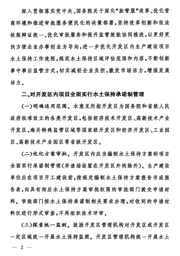 為持續(xù)深化水土保持“放管服”改革,更好服務(wù)市場(chǎng)主體、優(yōu)化營(yíng)商環(huán)境,根據(jù)《中共中央辦公廳 國(guó)務(wù)院辦公廳關(guān)于深入推進(jìn)審批服務(wù)便民化的指導(dǎo)意見(jiàn)》《水利部關(guān)于進(jìn)一步深化“放管服”改革全面加強(qiáng)水土保持監(jiān)管的意見(jiàn)》及有關(guān)改革精神,現(xiàn)就進(jìn)一步優(yōu)化開(kāi)發(fā)區(qū)內(nèi)生產(chǎn)建設(shè)項(xiàng)目水土保持管理工作提出以下意見(jiàn)。
