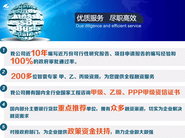 我公司擁有一支經(jīng)驗(yàn)豐富、專業(yè)性極強(qiáng)的項(xiàng)目報(bào)告撰寫團(tuán)隊(duì),可為客戶提供可行性研究報(bào)告、項(xiàng)目申請(qǐng)報(bào)告、資金申請(qǐng)報(bào)告、商業(yè)計(jì)劃書、節(jié)能評(píng)估報(bào)告、實(shí)施方案、項(xiàng)目建設(shè)書、PPP咨詢、收益及債券償還能力分析報(bào)告等報(bào)告編寫服務(wù)。