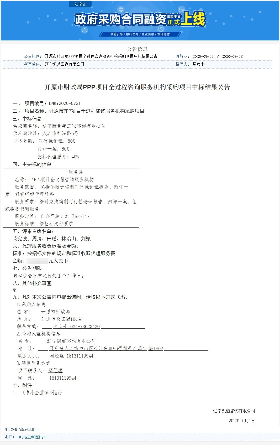 新青年工程咨詢(xún)中標(biāo)開(kāi)原市財(cái)政局PPP項(xiàng)目全過(guò)程咨詢(xún)服務(wù)機(jī)構(gòu)采購(gòu)項(xiàng)目